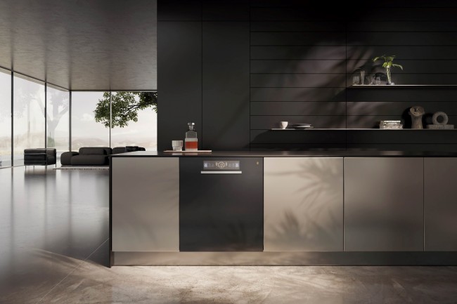 继为用户带来“内外兼修”全新厨居体验之后,融境厨房全厨再次亮相峰会,又带来了场景及产品的双向提升。第一,厨房场景品类进一步丰富。在嵌入式冰箱完全隐于橱柜基础上,烟机也实现了从350mm到325mm的尺寸突破,匹配厚度从66mm降到40mm的灶具,实现烟机“正面全隐、底面齐平”,灶底壳与台面翻边下沿平齐。同时,蒸烤箱原创“自开合门体锁闭系统”,省掉把手,全套实现全厨全隐全嵌。