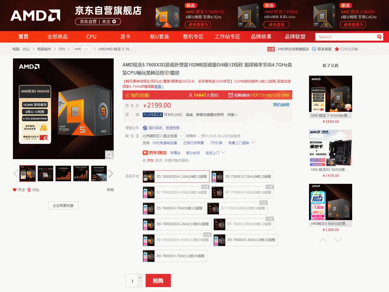 全新游戏神器!AMD 锐龙5 7600X3D京东现已开卖