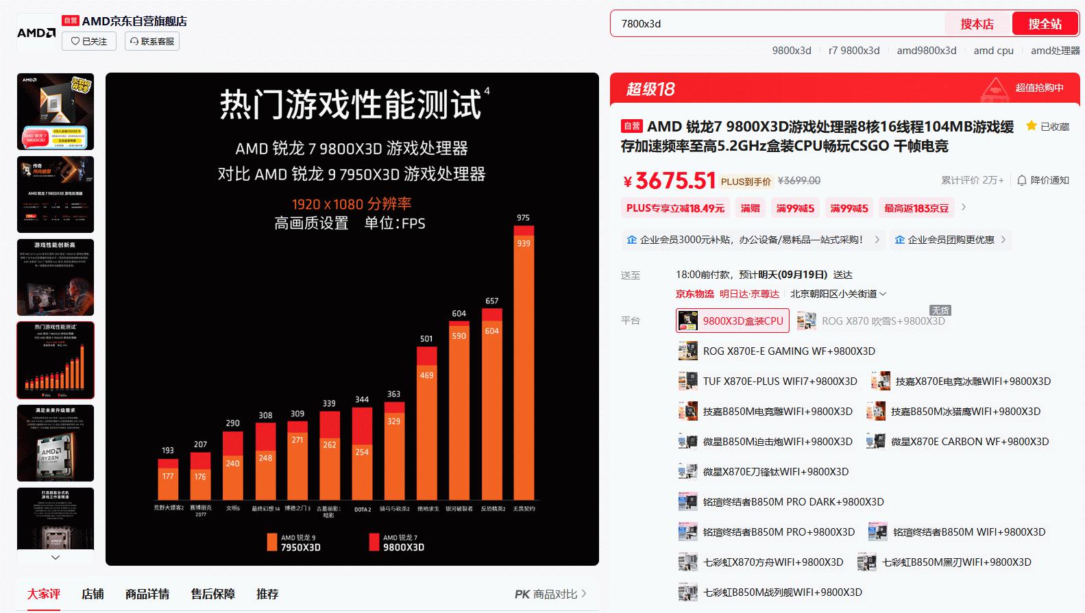 目前AMD锐龙7 9800X3D处理器在京东自营旗舰店3C数码开学季的最新报价是3699元,京东PLUS会员到手更加优惠。成为京东旗舰店会员还有0元入会抽100元E卡,首购返666京豆和晒单抽AMD周边等活动。近期AMD锐龙7 9800X3D处理器的价格在下调了200元之后都比较稳定,这样更能凸显出这款游戏神U的质价比了,近期准备攒机的DIY玩家值得最优先考虑。